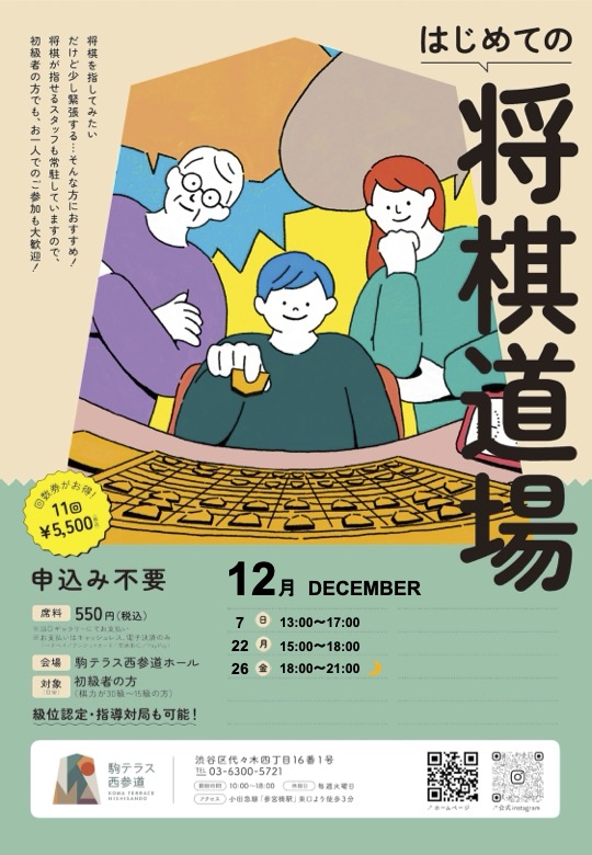 料金 ・過去「将棋を知ろう」「戦い方を教わろう」「ステップアップ」教室を受講していた方 2500円